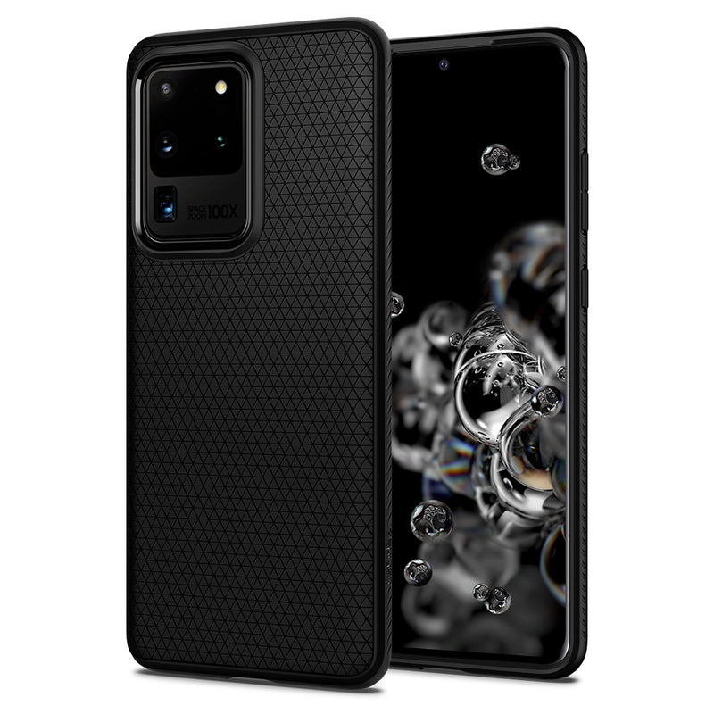Spigen Liquid Air® Case for the Galaxy S20 Ultra a shock-absorption in a sleek frame. Its slim but flexible layer is packed with Air Cushion Technology® and drop defense. Its geometric pattern on a matte black finish adds a modern touch with added cleanliness and fingerprint-resistant. Encase the Galaxy S20 Ultra in a polished and protective Liquid Air®.