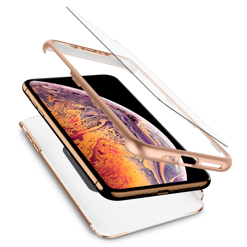 Keep the look and feel of the new Spigen iPhone XS Max with 360° defense. Lightweight with daily scratch defense, Thin Fit 360™ offers a slim but rigid coverage with a custom-fit glass protector to handle any unwanted screen contact. All features are left open for quick access and button response. Enjoy full coverage in a minimal frame with Thin Fit 360™.