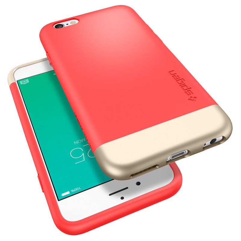 Spigen’s Style Armor offers your iPhone 6s Plus the perfect amount of décor with a smart 2-piece design in vivid colors. The hard polycarbonate case with a soft inner lining ensures all sides are covered in a two-tone palette that brings minimalism to the forefront for a trendy appearance that hugs the phone comfortably.