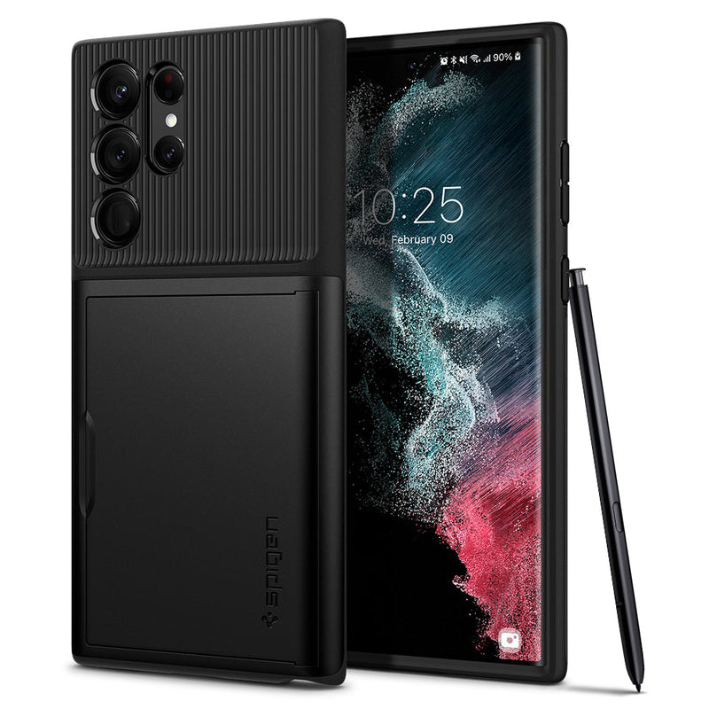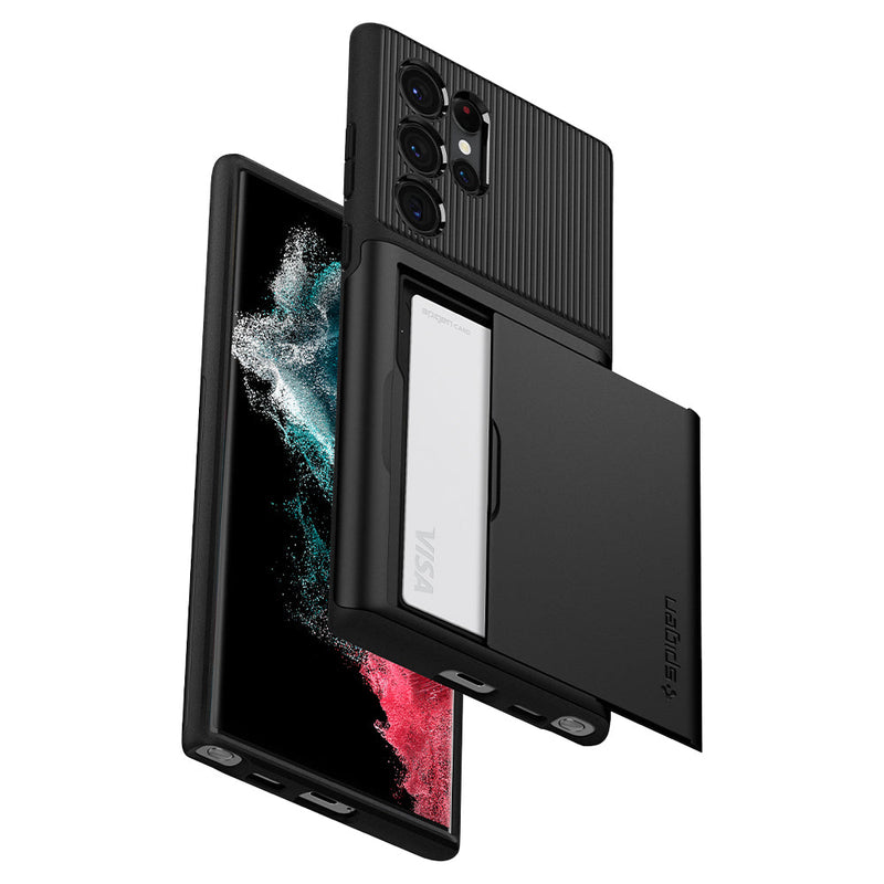 Bolstered protection meets practical storage in Spigen Slim Armor CS case for the Galaxy S22 Ultra 5G. Its dual-layer structure is designed to be pocket-friendly, with Air Cushion Technology packed into every corner for extreme defense. The back slides open for quick and easy access to cash or card storage. Even with all of the extra protection, the case remains slim and pocket-friendly. Encase your Galaxy S22 Ultra 5G in the functional yet durable Slim Armor CS case.