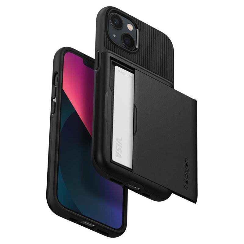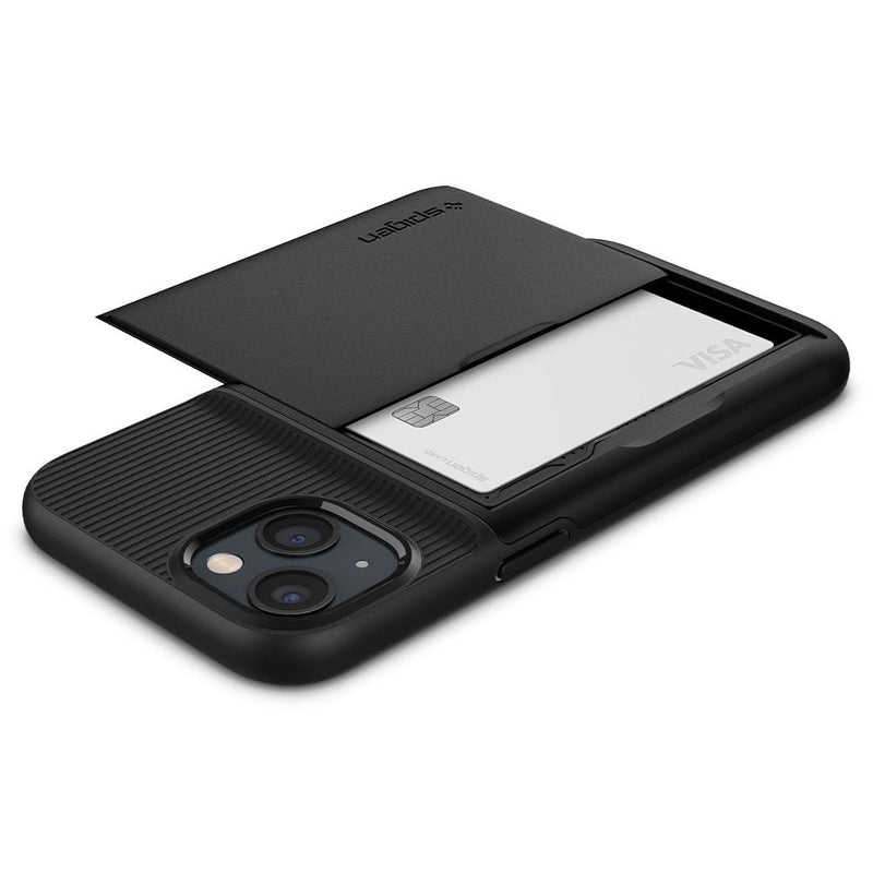 Spigen Slim Armor CS case for the new iPhone 13 combines extreme defense with on-the-go storage. Designed to be slim and pocket-friendly, the dual-layer structure is built with Air Cushion Technology® packed into every corner for bolstered drop-defense. The back slides open for easy access to a pocket of storage for a wad of cash or some cards. Even with all of the extra protection, the case remains thin and easy to grip. Encase your new iPhone 13 in the practical yet rugged Slim Armor CS.