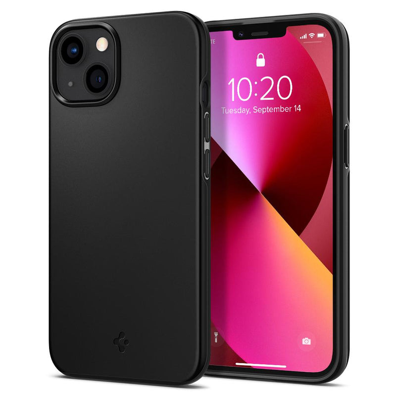 A timeless classic that leaves the iPhone 13 flawlessly fitted and guarded from everyday bumps. Made to stay lightweight and slim, Spigen Thin Fit case has been a long-time favorite for its got-nothing-on type of look.