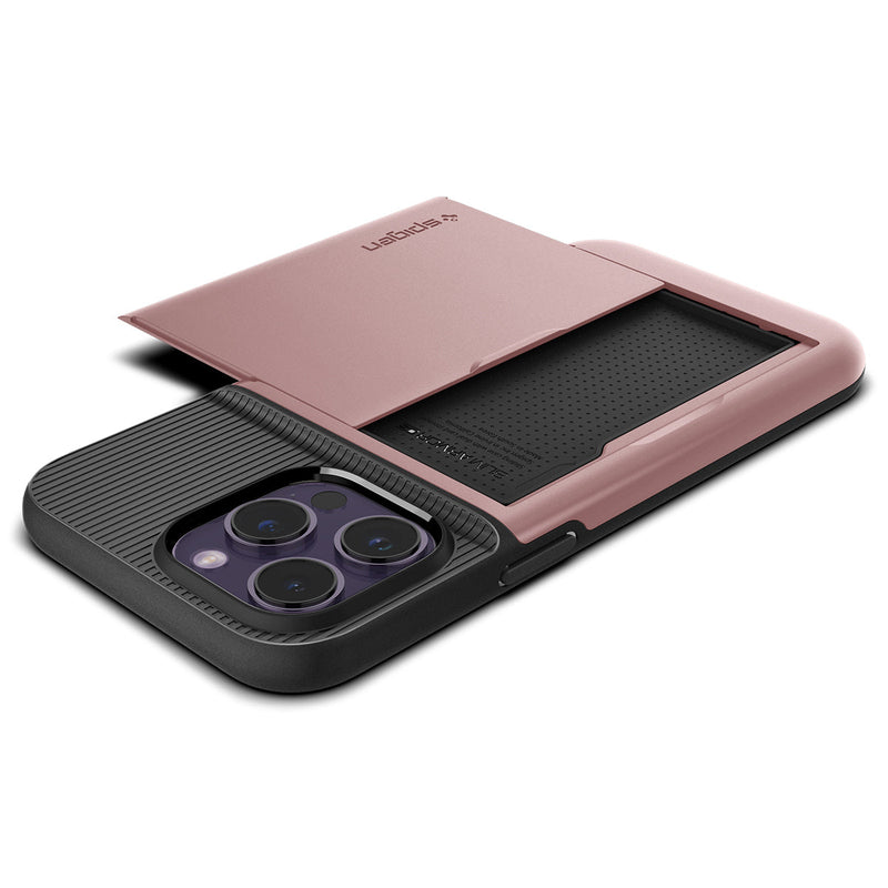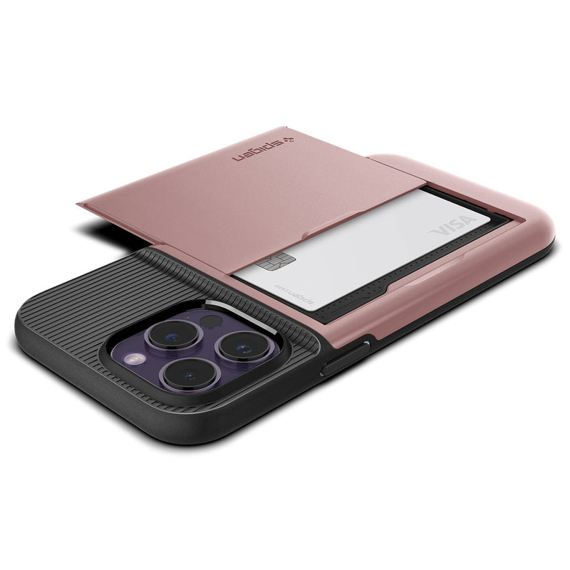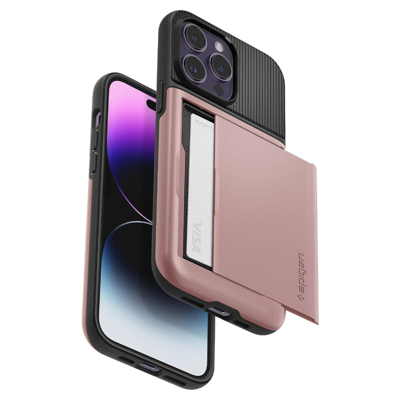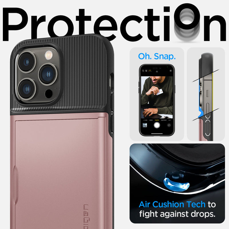 Expand your pocket real estate. Slim Armor CS makes your iPhone 14 Pro Max the only thing you need to carry. Its sturdy built-in wallet secures up to two cards and your phone from drops. Make the smart move and drop the bulky wallet. We got you.