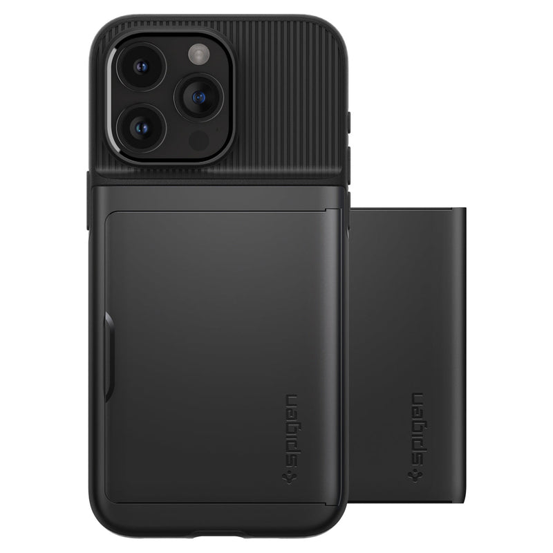 Expand your pocket real estate. Spigen Slim Armor CS makes your iPhone 15 Pro Max the only thing you need to carry. Its sturdy built-in wallet secures up to two cards and your phone from drops. Make the smart move and drop the bulky wallet. We got you.