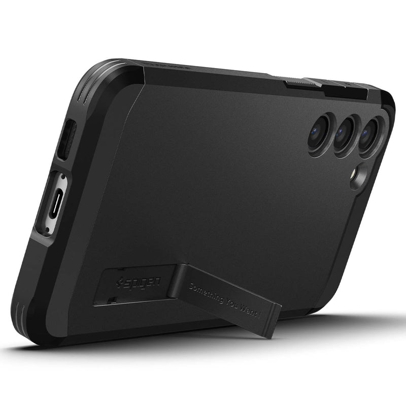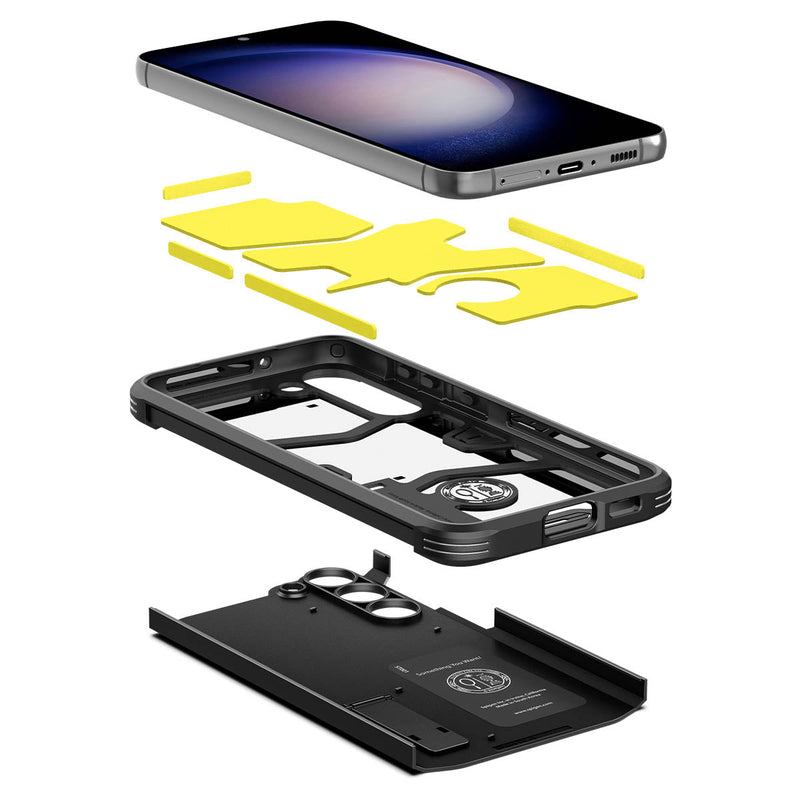 The guardian of the Galaxy. Spigen Tough Armor champions your Galaxy S23 with full-fledged protection. Forge on with multiple layers of defense against bad days and bad drops. Need a hand? Use the built-in kickstand for hands-free viewing. Seize the day with absolute confidence. We got you covered.