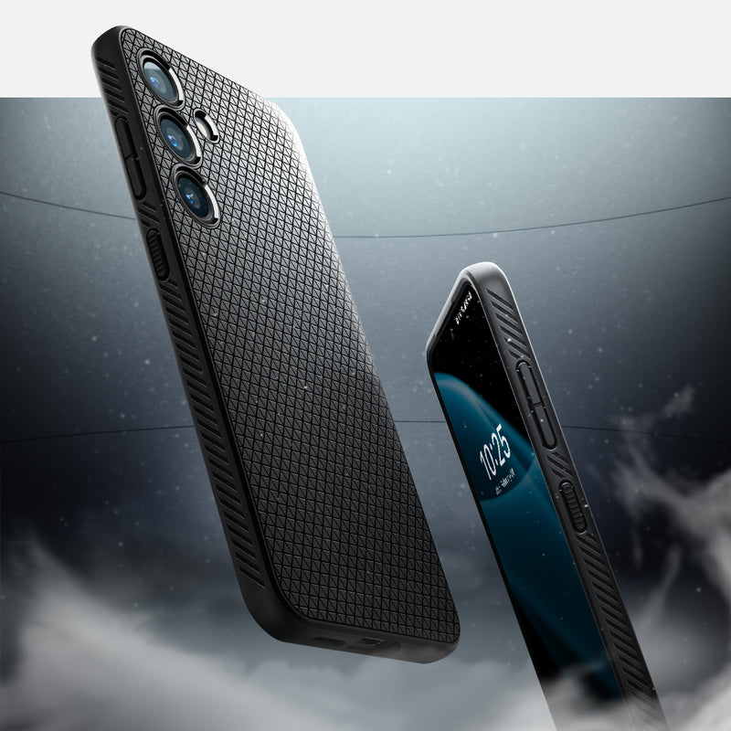 Go with the flow. Spigen Liquid Air case for Galaxy S24 Plus brings a refreshing look to your new Galaxy S24 Plus. Its geometric design provides protection and grip at all angles. Feel comfortable holding your device without all the extra bulk. The perfect grip meets the right amount of drip.