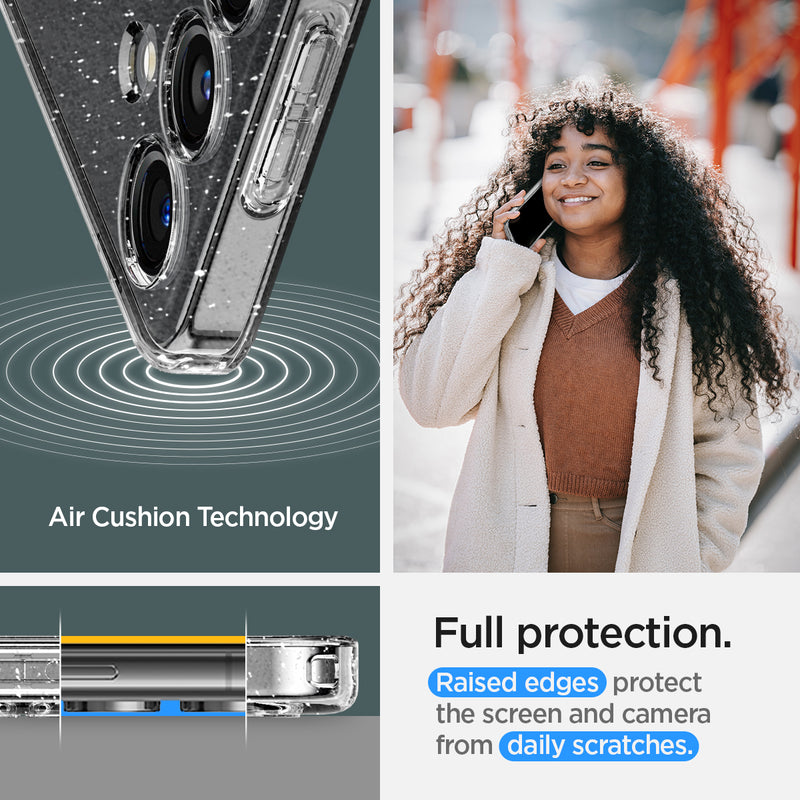 Shining. Shimmering. Protected. Spigen Liquid Crystal Glitter case streamlines a whole new dimension to your Galaxy S24 Plus. Its form-fitting design keeps everyday dings and scratches away. Wherever you go, always behold the splendid style of your Galaxy.