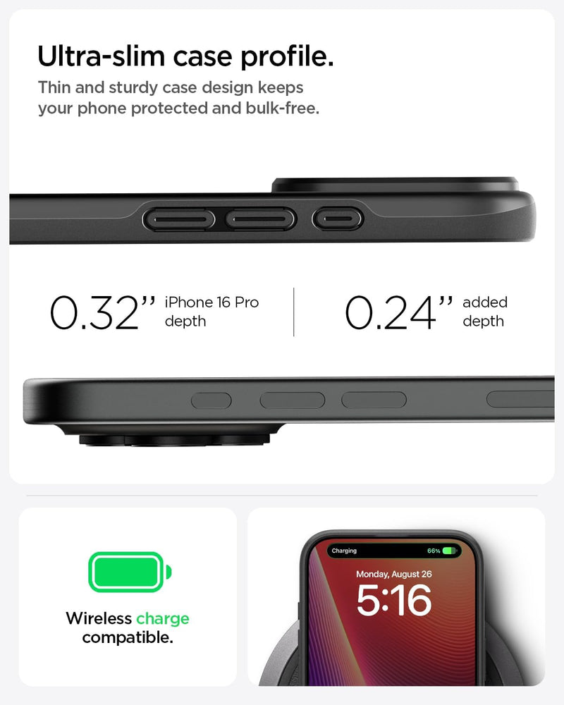 Put the thin in nothing. Guard your iPhone 16 Pro with Spigen Thin Fit MagFit case for a timeless look. Its minimalist design and slim silhouette make it a perfect fit for any lifestyle. Now complete with MagFit technology, opening the door to a world of MagSafe accessories.
