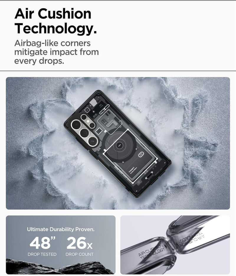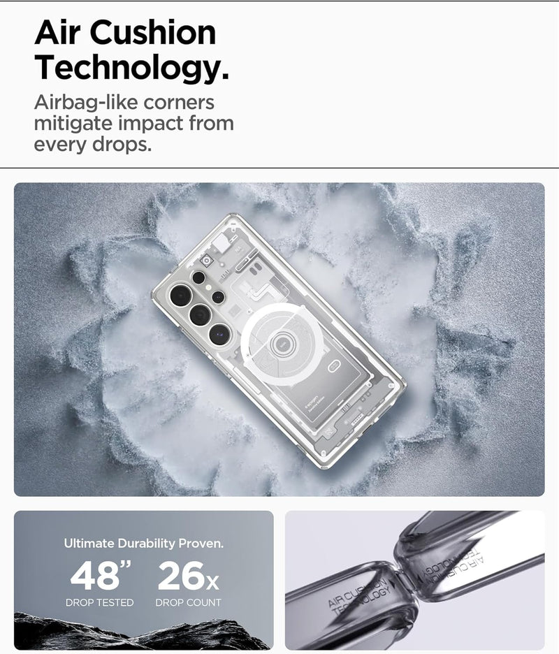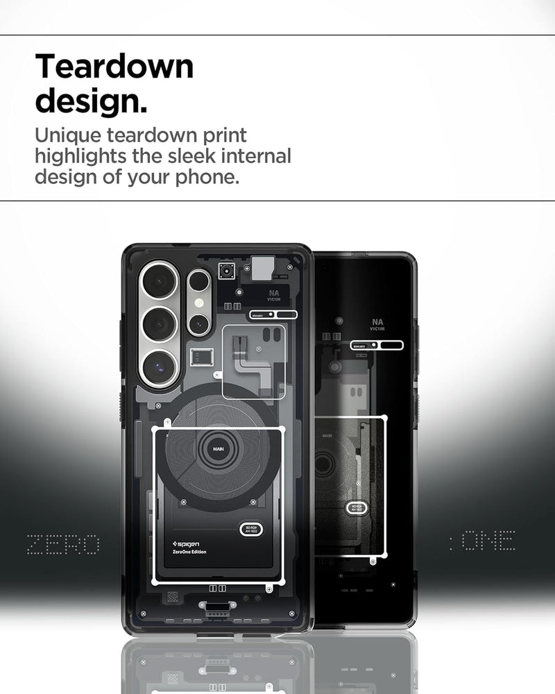 Find inner peace. Spigen Zero One overhauls your Galaxy S25 Ultra for the teardown you’ve always wanted. Look inside your Galaxy without tearing it up while protecting it from drops, scratches, and boring looks. Now with MagFit to unlock new magnetic accessories for your Galaxy. Non-plus ultra. Nothing further, nothing beyond in its class.