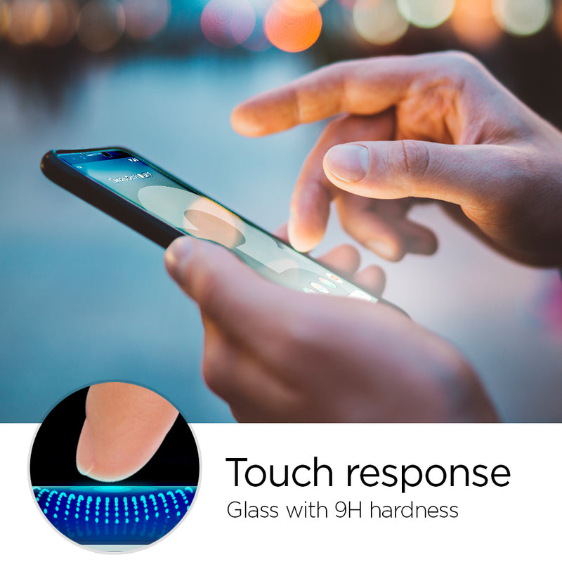 The GLAS.tR Slim™ is the ultimate solution for screen defense with case compatibility. Its tempered glass features 9H hardness to handle everyday scratches with a design exclusively made to stay on with all Spigen cases. Its oleophobic coating ensures the surface to remain fingerprint-free, touch-responsive and clear just as its original screen. Shield the screen with GLAS.tR Slim™. ** Notice: For perfect alignment, install the glass with the screen on.