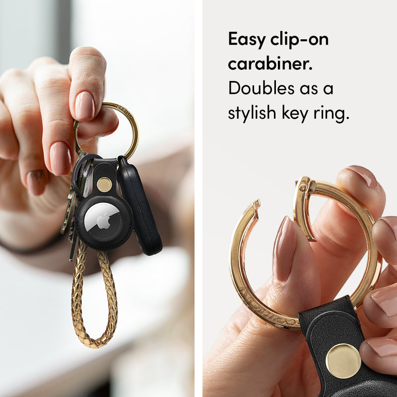 Features firm button clasp keeps your AirTag securely. Hang your AirTag on your bag, key, wallets, clutches with stylish gold clip-on carabiner.