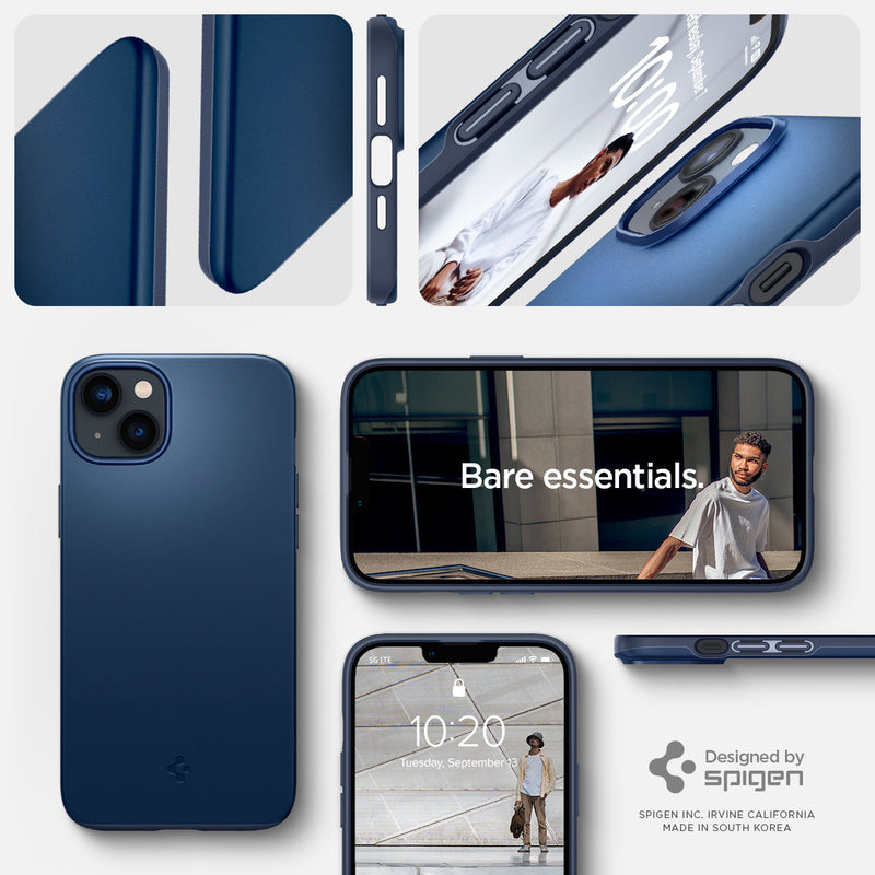 Put the thin in nothing. Cover your iPhone 14 Plus with Spigen Thin Fit for a timeless look. It features a slim silhouette that comfortably fits in your pocket and your hands. Don’t underestimate its minimal design: its drop protection is anything but minimal.