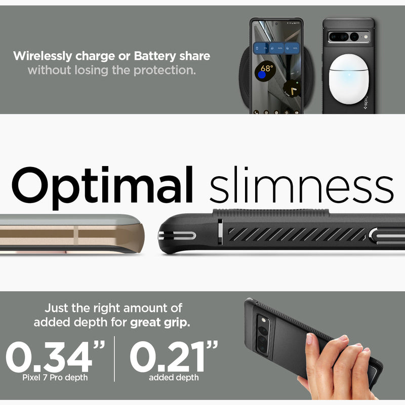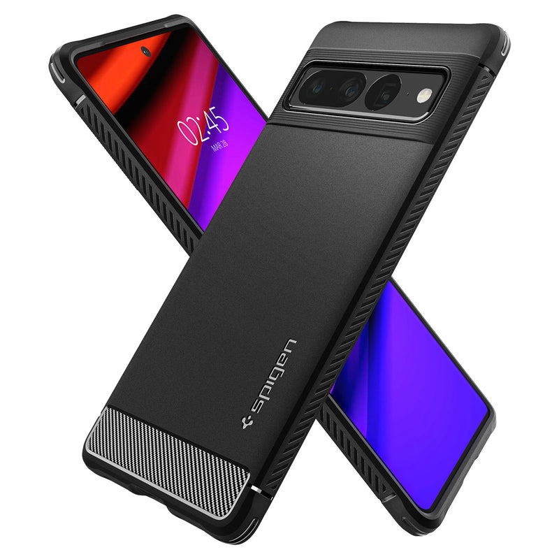 Rugged refined. Spigen Rugged Amor celebrates a decade of protection with a classic design for your Pixel. Tried and true, its modern and sleek carbon fiber detailing is built to take a punch. Be ready to take on the daily beat..