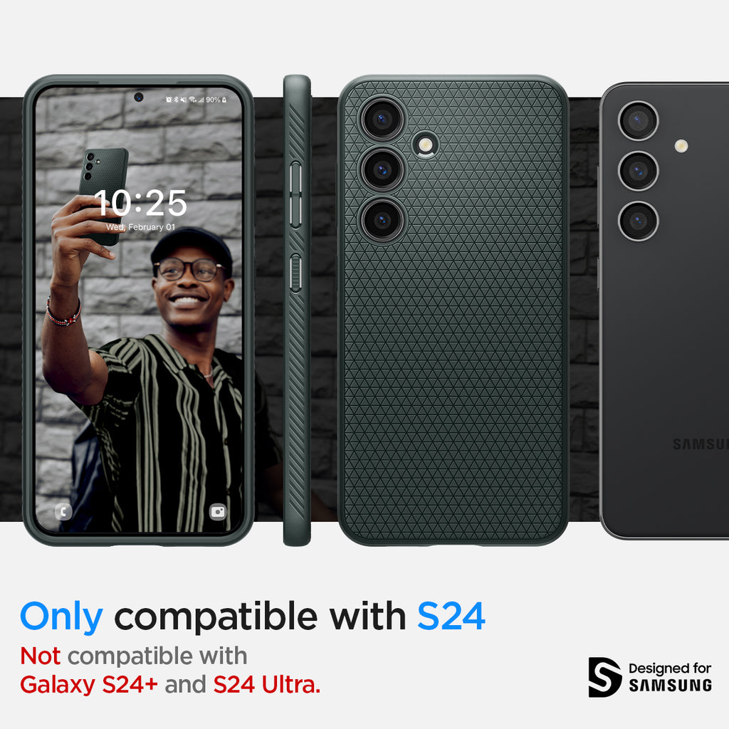 Go with the flow. Spigen Liquid Air case for Galaxy S24 Ultra brings a refreshing look to your new Galaxy S24. Its geometric design provides protection and grip at all angles. Feel comfortable holding your device without all the extra bulk. The perfect grip meets the right amount of drip.