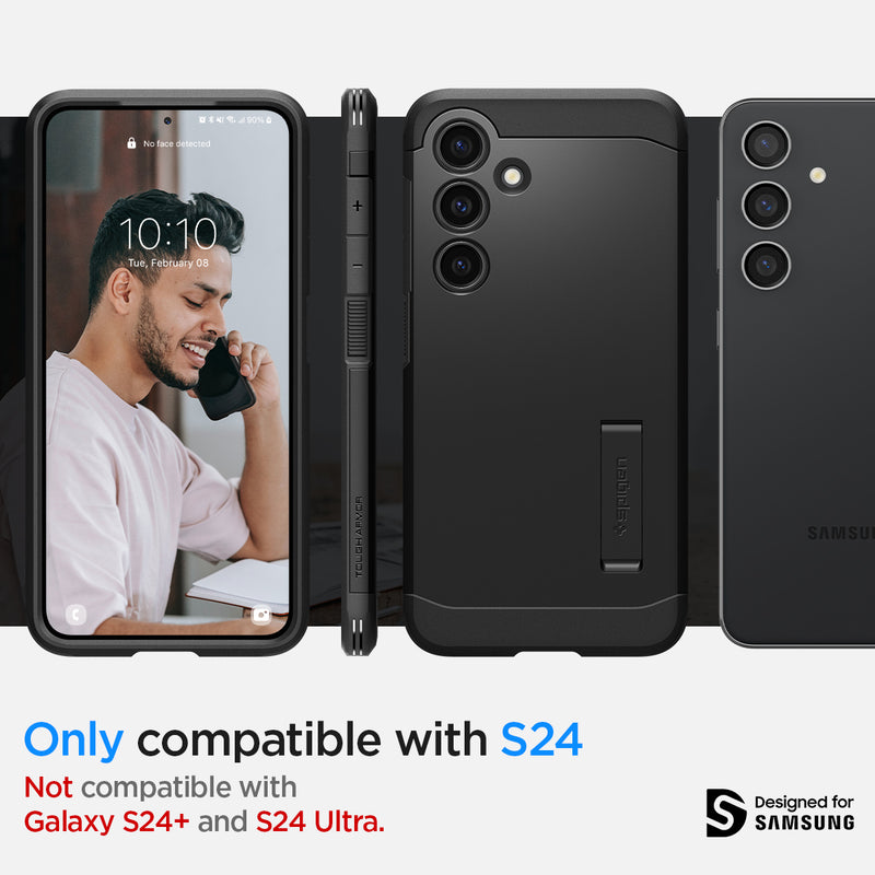 Toughen it up. Spigen Tough Armor case champions your Galaxy S24 with full-fledged protection. Forge on with a bolstered yet sleek shield for confidence against bad days and bad drops. Kickback with a built-in kickstand for unbeatable convenience. We got you.