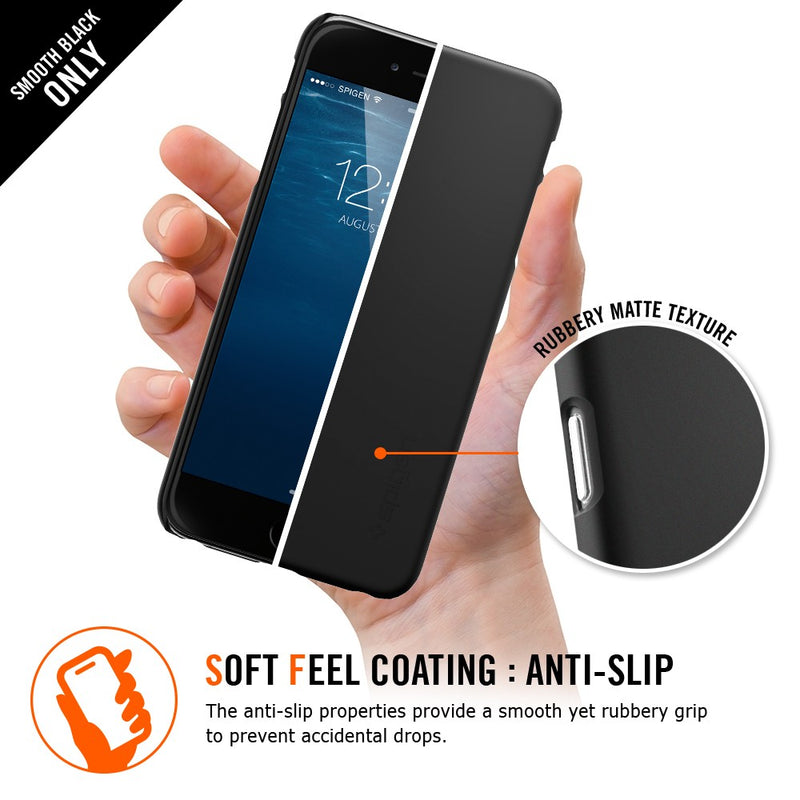 Spigen iPhone 6 (5.5) case Thin Fit Series is a hard case made of polycarbonate material. The durable, lightweight, and non-toxic qualities of polycarbonate make the Ultra Fit a reliable solution for protecting the iPhone 6 (5.5) from external impacts. The Thin Fit case is carefully designed to precisely form-fit the phone to highlight the original design of the iPhone 6 (5.5)